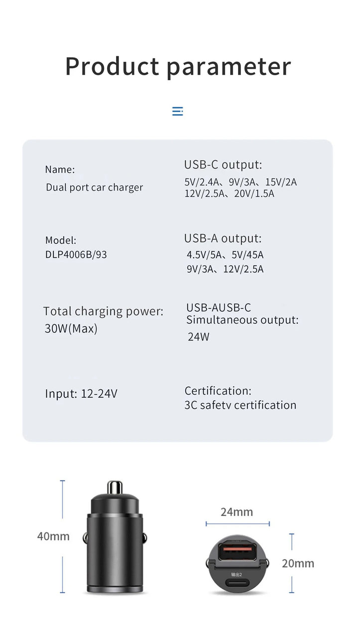 100W/200W QC3.0 PD Mini Car Charger 12-24V Lighter Fast Charging Car USB Type C Charger for Xiaomi Samsung Huawei iPhone Power